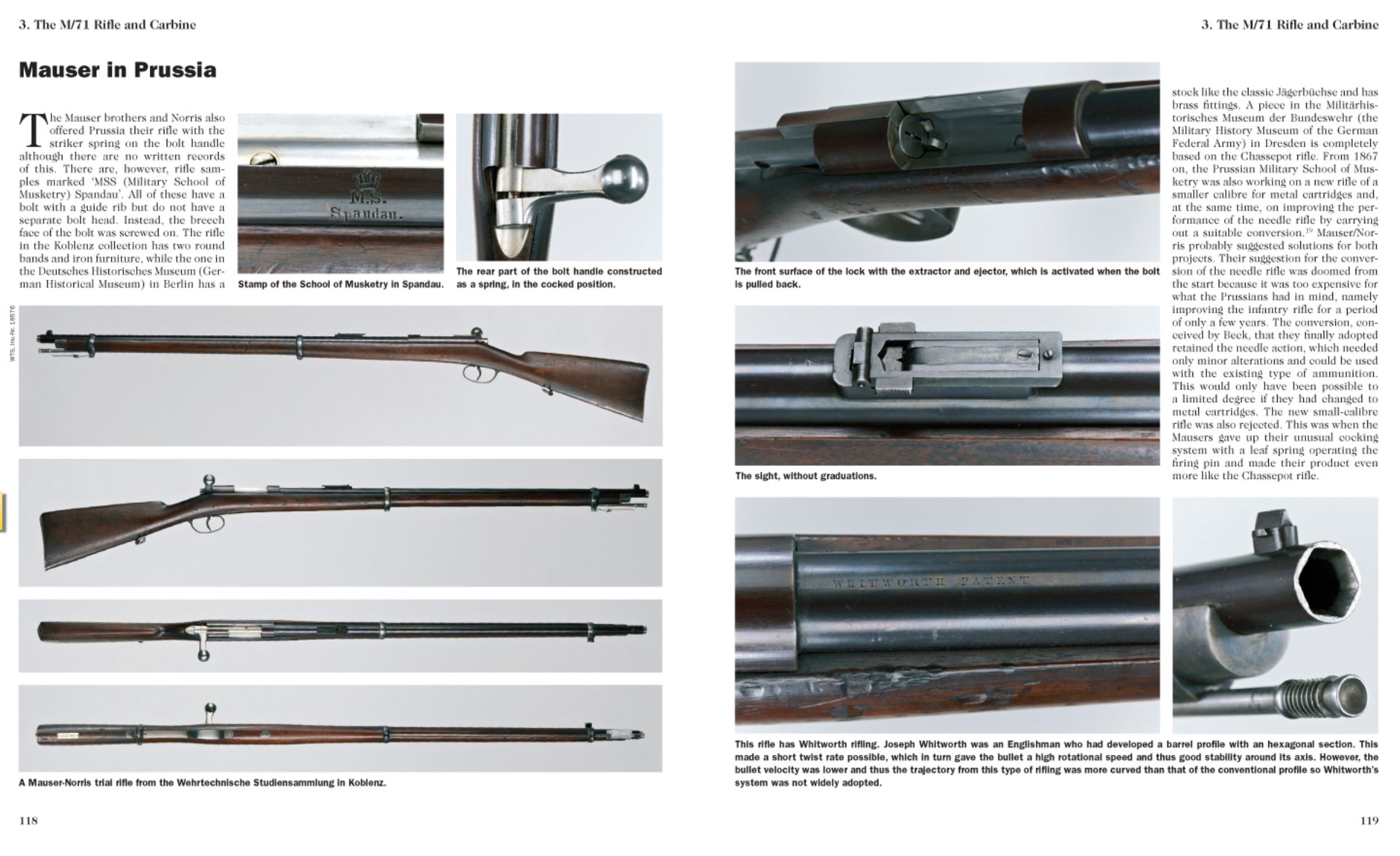 shown in photographs. The M/71 and M/71.84 rifles are dealt with in the same way and for the first time the Chassepot rifles used in the German Imperial Army are comprehensively presented. The time frame extends to the end of the First World War, since many black powder weapons were still used, mainly for training purposes, up to 1918.
