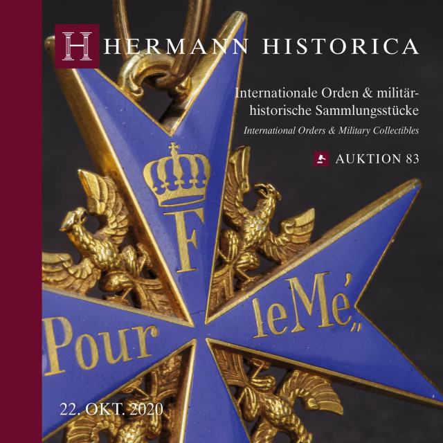 Our catalogue "International Orders & Military Collectibles" includes 580 lots. The descriptions are in German, with English translations of objects above a certain threshold. The printed catalogue on high-gloss paper is in the format 22 x 22 cm. In our high-quality thread-bound hardcover catalogue all lots are illustrated in color.