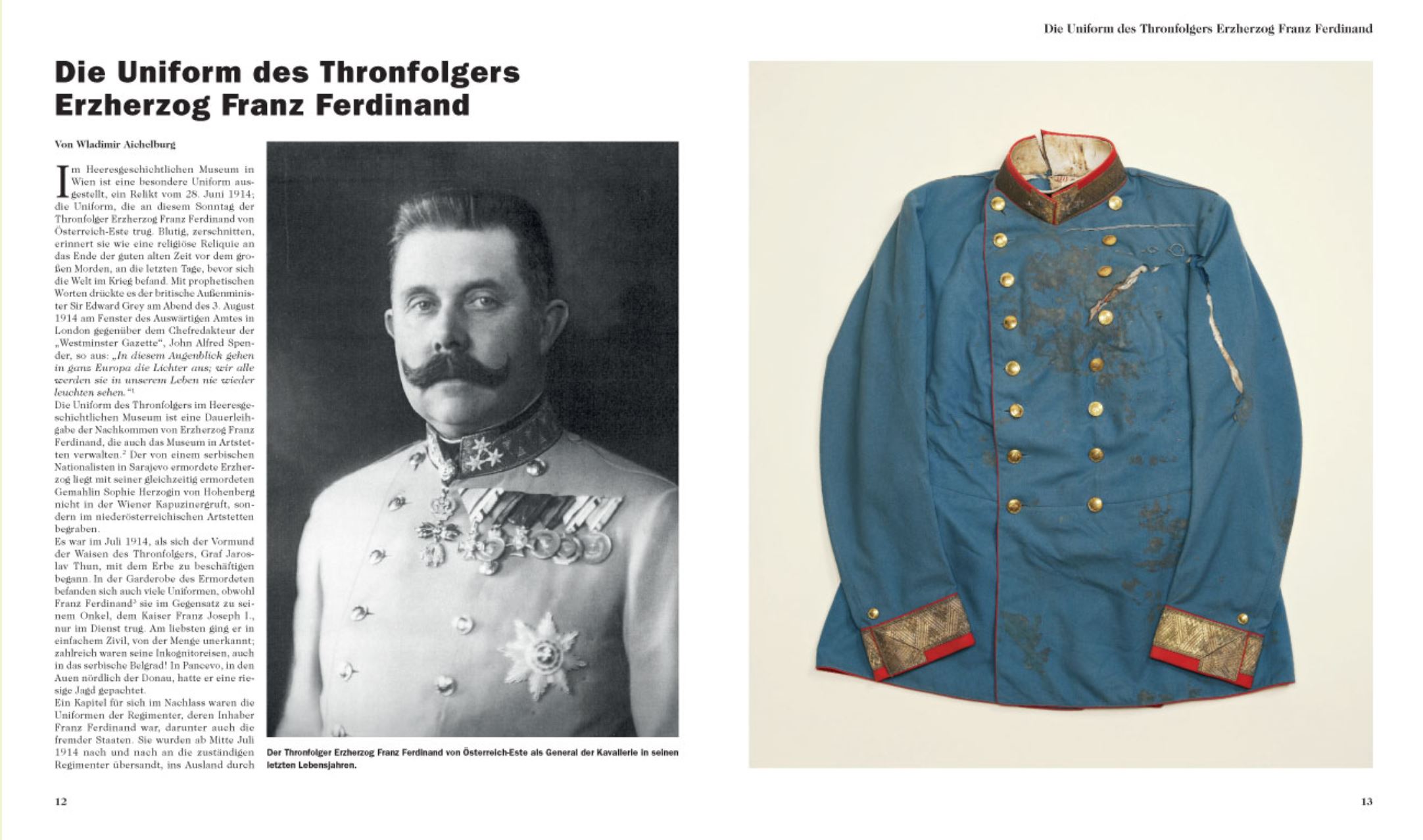 Ein eigener Abschnitt widmet sich dem Thronfolger Erzherzog Franz Ferdinand und dem tödlichen Attentat von Sarajewo. Augenzeugenberichte beschreiben die dramatischen Ereignisse vom 28. Juni 1914. Fotoaufnahmen der Uniform Franz Ferdinands, die er am 28. Juni 1914 trug und die seit damals im Heeresgeschichtlichen Museum in Wien in einer Vitrine ausgestellt ist, wurden für dieses Buch sorgsam festgehalten und geben Zeugnis vom tragischen Ereignis, das die Welt 1914 in den Krieg stürzte.