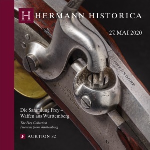 | 43 4038 4036 Infanteriegewehr M 1871, Mauser Oberndorf, mit Seitengewehr M 1871 Kal. 11,15x60R, Nr. 4536 B, nummerngleich inkl. Schrauben. Blanker Lauf. Laufwurzel gemarkt „Gebr. Mauser & Co Oberndorf”. Fertigung 1876. Truppenstempel „122.R.E.1.212.”. Lauf original bräuniert. Ver- schluss und Hülse blank, minimal fleckig. Beschläge brüniert. Abzugs- bügel Messing. Nussholzschaft mit moderaten Gebrauchs- und Lager- spuren, beidenRiemenbügeln und Entladestock. Dazu ein Seitengewehr M 1871 mit Lederscheide, Fabrikat Weyersberg. Länge 135 cm. Erlaubnispflichtig. 264526 I - II € 800 4037 Karabiner M 1871, Mauser Kal. 11,15x60R, Nr. 6341, nummerngleich inkl. Schrauben. Blanker Lauf. Treppen-Rahmenvisier. Laufwurzel gemarkt „Gebr. Mauser &Co Oberndorf”. Fertigung 1876, Indienststellung 1877. Truppenstempel „20.U.4.43.”. Lauf vollständig original brüniert. Verschluss mit verharz- tem Fett und Hülse blank, ebenso alle Beschläge. Nussholz-Vollschaft mit Gebrauchs- und Lagerspuren sowie beiden Riemenbügeln. Länge 100 cm. Erlaubnispflichtig. 264516 II + € 800 4038 Steinschlosspistole, Pfeuffer in Oberndorf, um 1820 Glatter, oktagonaler, leicht gestauchter, neu brünierter Lauf imKaliber 14,5 mm, auf der Oberseite bezeichnet „Königl.Würt.Gew. Fabrik. Oberndorf”. Glattes Steinschloss, auf der Schlossplatte signiert, Hahn mit repariertem Bruch. Vollschaft mit eiserner Garnitur und Lade- stock mit Beindopper. Waffe leicht überarbeitet, Vorderschaft rechts unterhalb der Mündung mit reparierten Rissen und kleiner Ergänzung. Länge 30 cm. 264992 III + € 300 4039 Infanteriegewehr M 1871/84, Mauser Oberndorf, mit Seitengewehr M 71/84 Kal. 11,15x60R, Nr. 2943 A, nummerngleich inkl. Schrauben bis auf eine mit „42”. Blanker Lauf. Laufwurzel gemarkt „Waffenfabrik Mauser Oberndorf a/N”. Fertigung 1887. Truppenstempel „124.R.14.71.”. Voll- ständige, originale Brünierung am Lauf, Verschluss und Hülse blank, Reste von Brünierung an den Beschlägen. Heller Nussholzschaft mit geringen Trage- und Lagerspuren, beide Riemenbügel. Dazu ein kom- plett vernickeltes Eigentums-Seitengewehr mit schwarzer Lederscheide ohne Hersteller. Länge 129 cm. Erlaubnispflichtig. 264543 I - II € 800